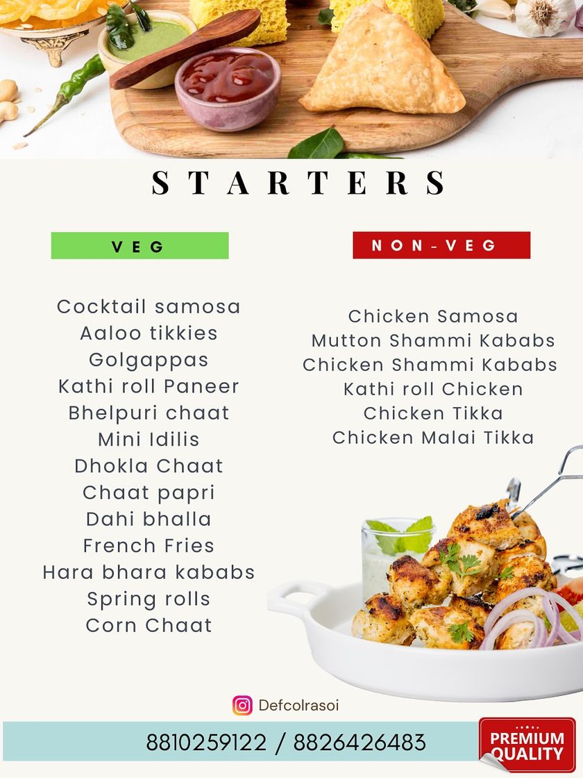 This is the first set of visuals a user sees. It's curated to showcase the best of DefCol Rasoi, balancing variety, quality, and the core message of delicious, home-cooked food for your events.