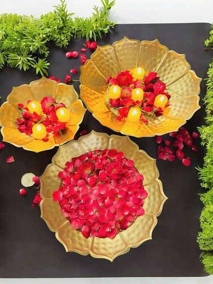 - Urlis: Large decorative bowls (10 to 14 inch diameter) for floating flowers or candles, often with attached Diya holders or stands.