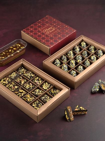 Light up your Diwali with our special collection of festive treats. We offer everything from signature hampers with no added sugar chocolates and scented candles to gift boxes of our unique fusion dessert tubs like Kunafa and Gulab Jamun Crème. Each gift is beautifully packaged to capture the spirit of the festival.