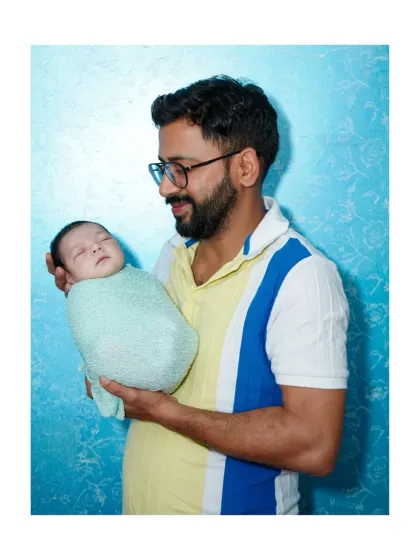 Pregnancy is a wild ride, and I get how personal it is. We can shoot in my Ghaziabad studio or hit a park in Delhi NCR if you want that natural vibe. I’ve got props like baby shoes, sashes, and slates for messages. For newborns, I set up cozy baskets, soft wraps, and even fun themes (Harry Potter fans, I got you). Safety is always top priority. Parents, jump in for candid family portraits - those first family photos are gold.