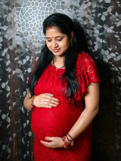 - Wardrobe: Includes access to the studio's collection of maternity gowns (Red/Peach/Yellow long trail gowns and bodycon dresses). Clients may also bring personal outfits.