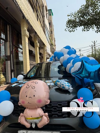 We set up custom balloon decorations, themed backdrops, and personalized signs for baby showers, naming ceremonies, and newborn welcomes at your home or venue, handling everything from planning to setup.