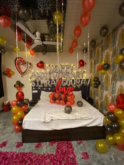 We specialize in creating romantic and memorable anniversary celebrations through our personalized decoration services. Our setups feature elegant balloon arrangements, heart-shaped designs, rose petals, and ambient lighting to set the perfect mood.