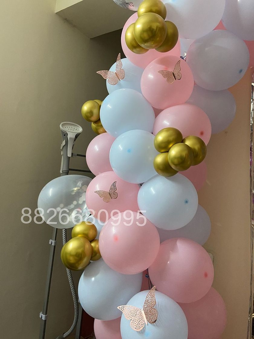 I create beautiful and delicate decorations for baby showers and to welcome a new baby home. These setups often feature soft pastel color palettes, elegant balloon arrangements, and personalized welcome signs.