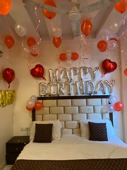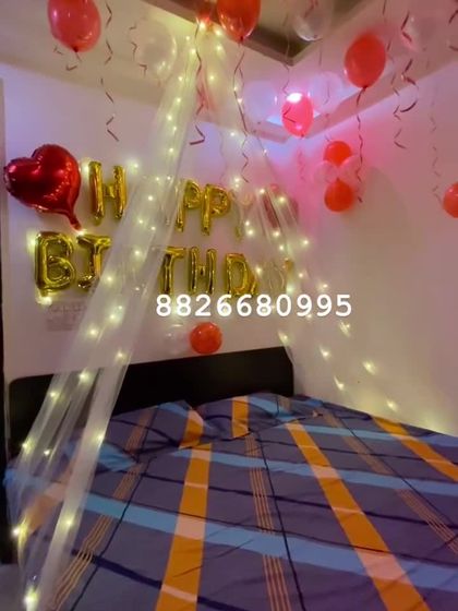 I create personalized birthday setups for your partner. This includes everything from balloon arrangements and custom name or age foils to romantic lighting and bed decorations, available in various color schemes and themes to make their day special.