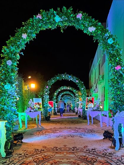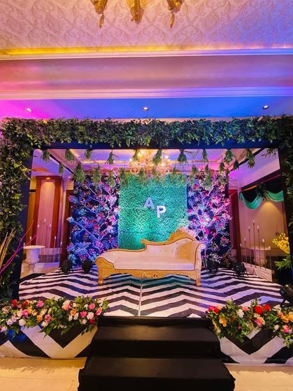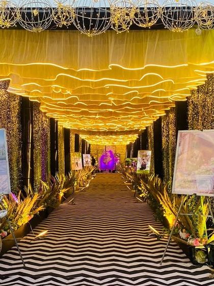 Signature Style - Grand floral stage decor, glittering entrance tunnel, and wild themes like Ramanyan Land. Hum aapke sapne poore karte hain.