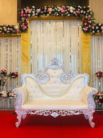 - Anniversaries: Golden jubilee stage with heavy drapes, crystal curtains, and a flashy sofa. Always lots of flowers and moody lights for that formal vibe.