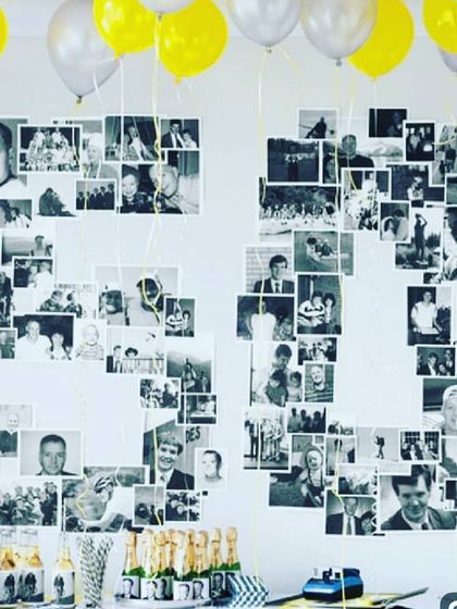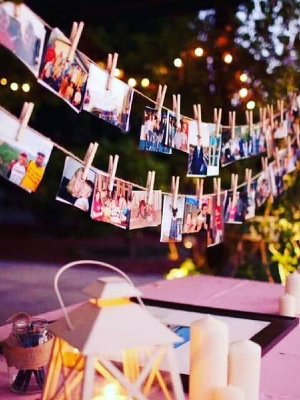- Want something more personal? I clip your photos to ribbons, make photo collages in the shape of the occasion year, and hang fairy lights photo wall for a cozy, memory-filled feel.
