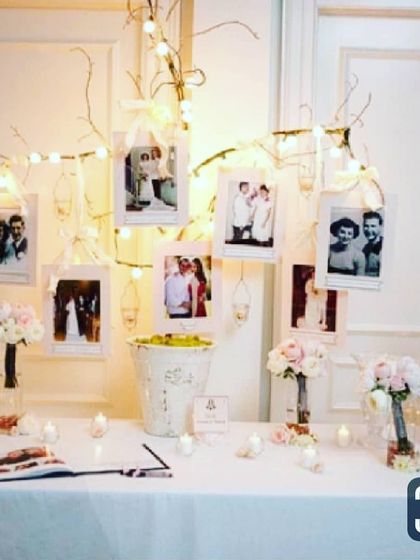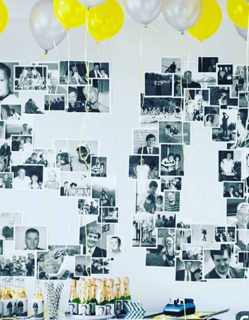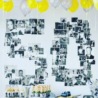 Add a personal touch to your celebration by showcasing your favorite memories. I can create stunning displays such as photo collages in the shape of a milestone number, elegant photo walls with fairy lights, or simple memory strings with photos clipped to balloon ribbons.
