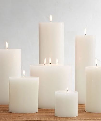 - Pillar Candles: Indian pillar candles in round and square shapes, solid colors, sizes from tiny to huge. Some burn for up to 120 hours - great for long events.