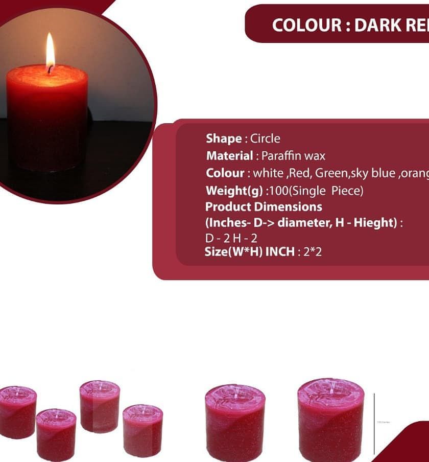 This section is for my business customers who need clear product details for placing bulk or wholesale orders. These images provide specifications on size, color, and material for my popular small pillar candles.
