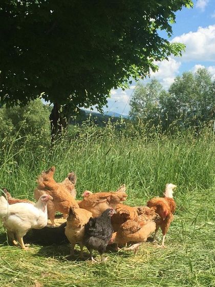 Chicken-Powered Composting - Our chickens help break down food scraps, mixing and aerating, making compost that’s perfect for your garden.
