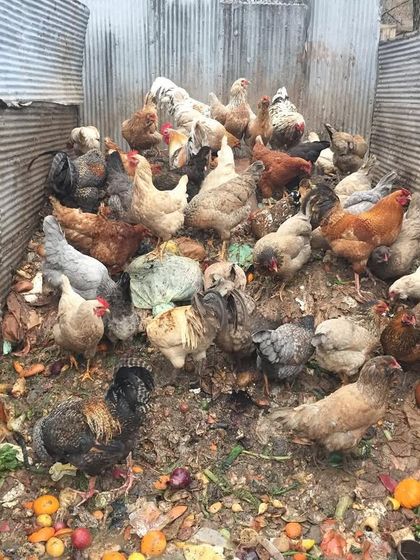Chicken-Powered Composting - Our chickens help break down food scraps, mixing and aerating, making compost that’s perfect for your garden.