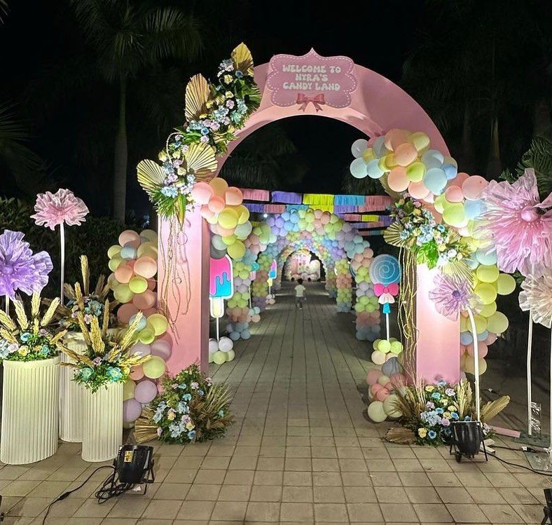 For a touch of magic, I design elegant and whimsical party themes. This includes dreamy butterfly gardens, celestial 'First Trip Around the Sun' space adventures, sweet candy lands, and pastel rainbow setups.