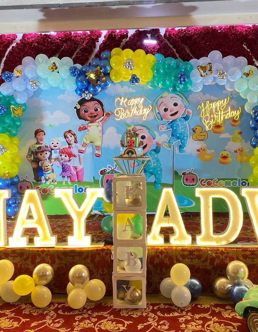 I bring your child's favorite characters to life with vibrant, fully-themed party setups. I can provide custom backdrops, character cutouts, and matching balloon decor for themes like Cocomelon, Boss Baby, Peppa Pig, Minnie Mouse, and more.