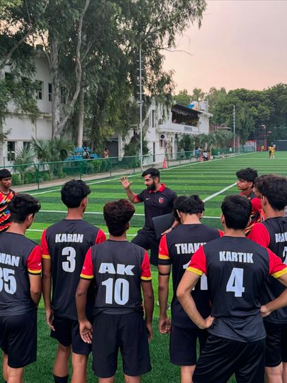 We train kids aged 4 to 18 with certified coaches, match experience in Delhi leagues, sand pit strength sessions, and regular fitness checks.