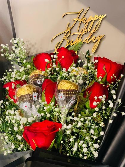 Mix and match anything - roses with chocolates, add birthday toppers, pick your paper colour, go for heart-shaped boxes or classic hand-tied. Pretty much, tell me your idea and I’ll make it happen.