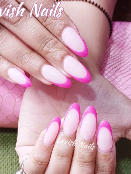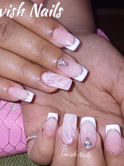 I offer a fresh take on the classic French manicure. You can choose the original white tip or customize it with bold colors, chrome or glitter lines, and even hand-painted art like floral or animal prints. These are available on various nail shapes, from classic square to sharp almond.
