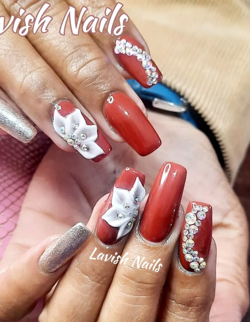 For those who love extra dimension and shine, this collection showcases my work with various embellishments. I use everything from full-coverage holographic glitter and sleek chrome powders to intricate 3D elements like sculpted flowers, pearls, and carefully placed rhinestones. These designs add a dramatic, high-impact finish to any look.