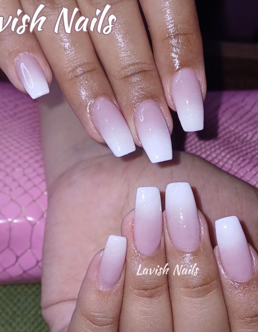I create seamless ombre and gradient effects for a clean and modern look. This includes the classic pink-and-white "baby boomer" style, as well as custom color fades from nude-to-teal or with added glitter. This technique is perfect for an elegant, elongated nail appearance.