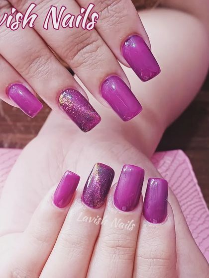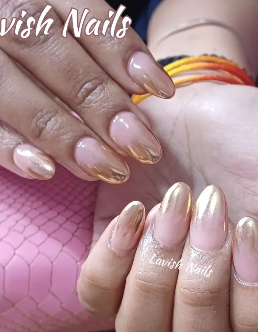 For a high-shine, futuristic look, explore my chrome and metallic nail designs. I offer a range of finishes, from classic gold and silver to iridescent and cat-eye effects, applied as a full color, an ombre, or as artistic accents.