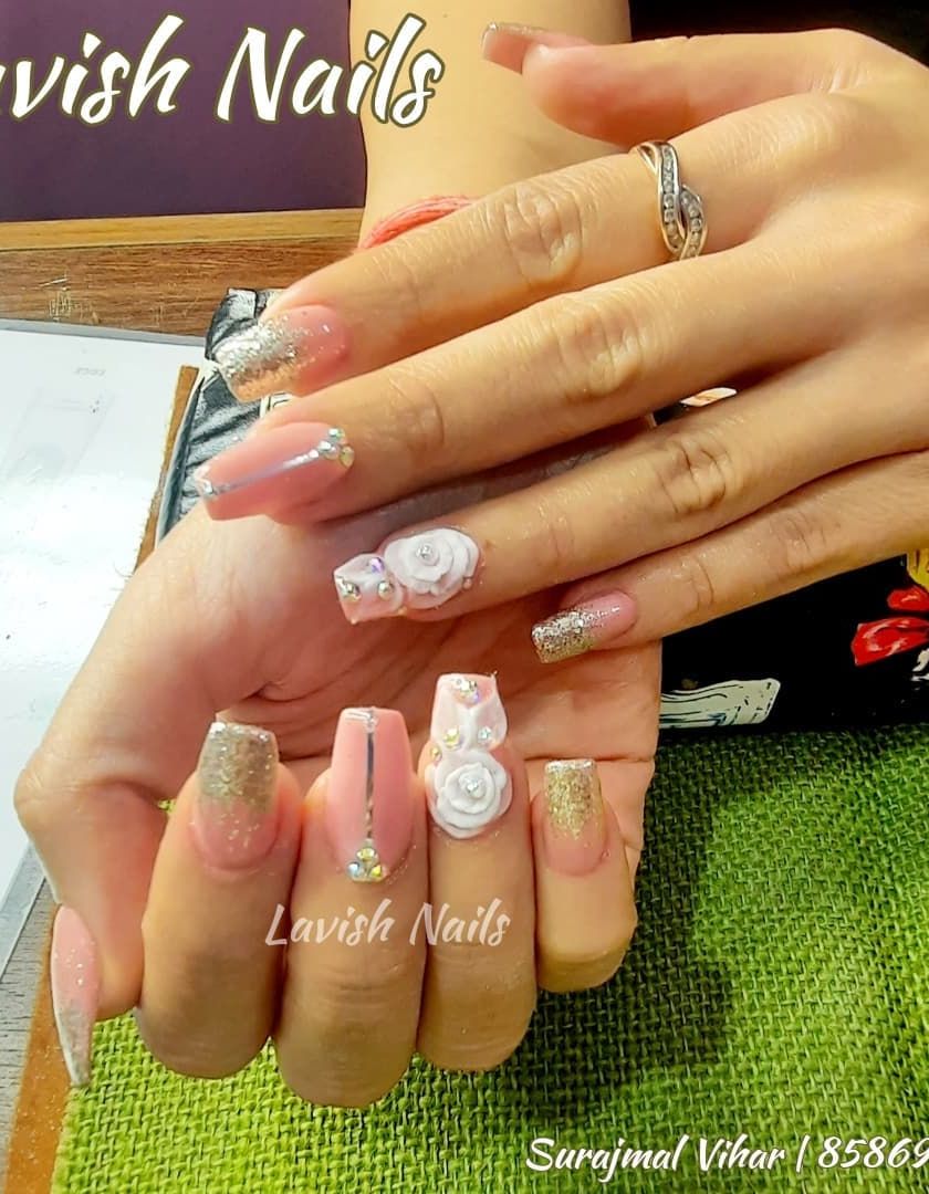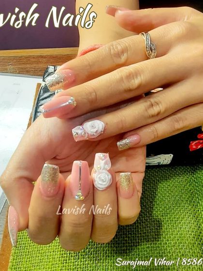 I specialize in creating bespoke nail designs for your most important events, especially weddings. We can work together to create a set that perfectly matches your outfit, mehendi design, or theme, using elegant elements like fine glitter, Swarovski stones, and delicate 3D art.