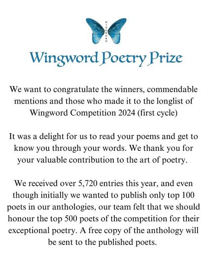 - My flagship Wingword Poetry Prize is a national poetry competition that’s been running for 7+ years. No matter if you’re a beginner or have been writing for years, you belong here.