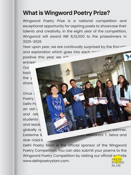 Wingword Poetry Prize - Our big annual contest for poets in India. Cash prizes, publishing deals, and poems accepted in English, Hindi, and more.