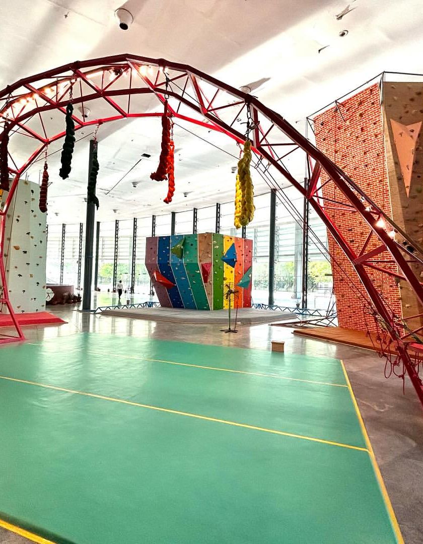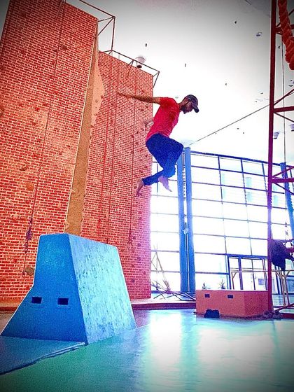 Welcome to our home at the DDA Squash and Badminton Stadium. We have a spacious, matted area with custom-built obstacles, climbing walls, and everything needed for a complete movement practice.