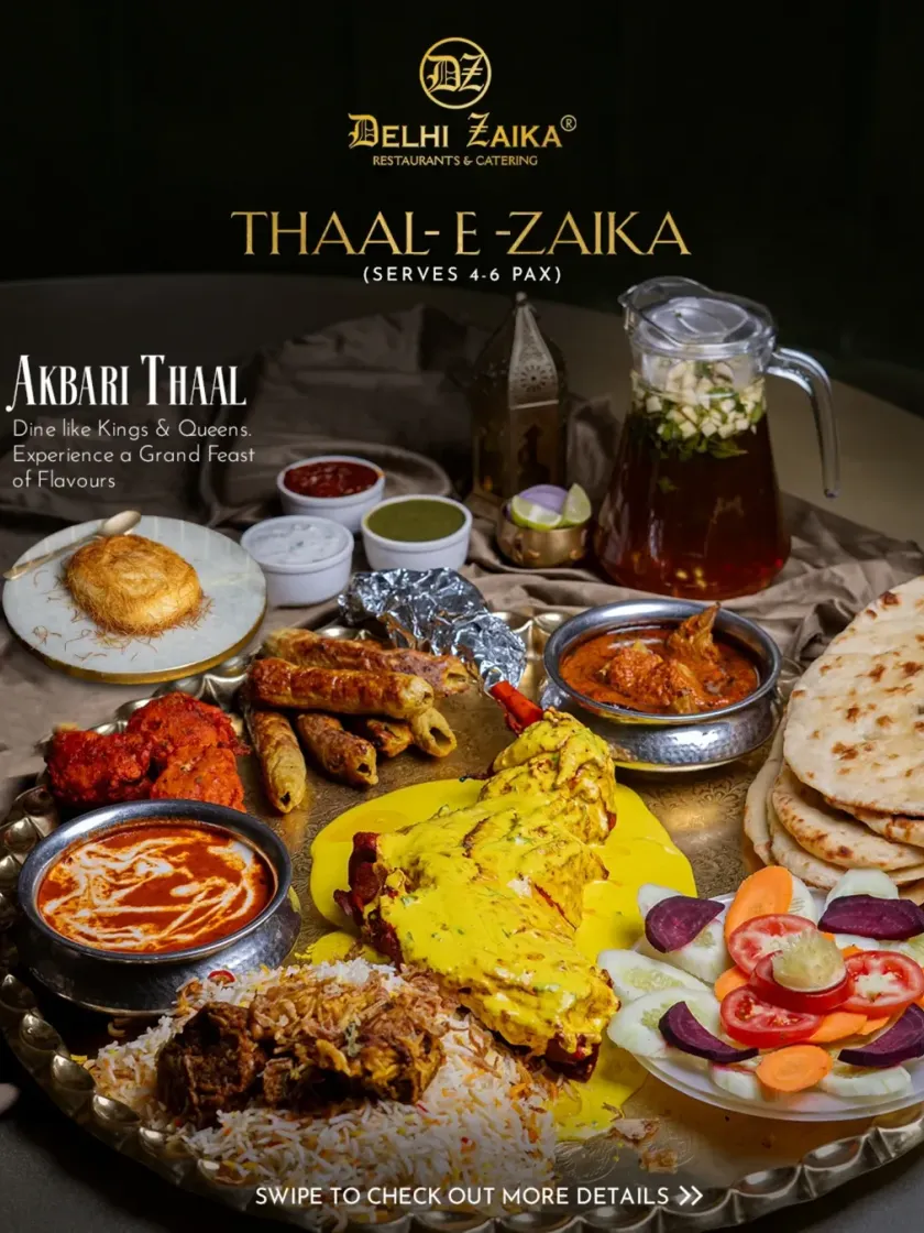 Designed for sharing, our Thaals are a complete dining experience on a single platter. Perfect for groups of 4 to 12, each Thaal offers a curated selection of our signature starters, gravies, biryani, breads, and desserts, ensuring a grand and memorable feast for your entire party.