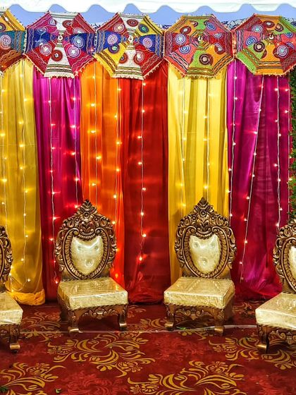 We design and set up beautiful stages for all your special occasions, including baby showers, naming ceremonies, and mehndi functions. We offer a variety of themes, from traditional and royal setups with ornate seating to vibrant and colorful backdrops with custom lighting.