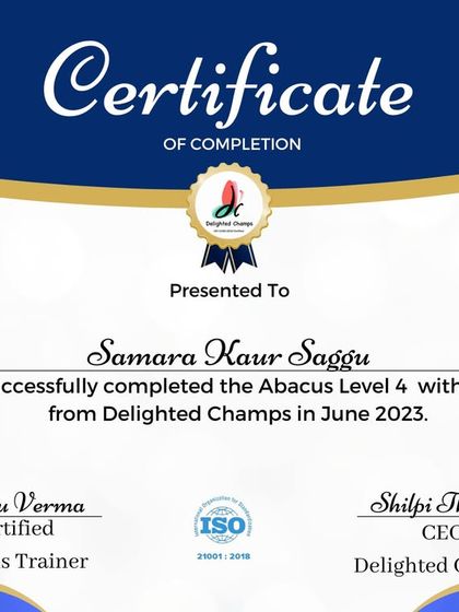 I believe in celebrating every milestone on a child's learning journey. Here, I proudly showcase the certificates earned by my students for successfully completing different levels of my abacus program.