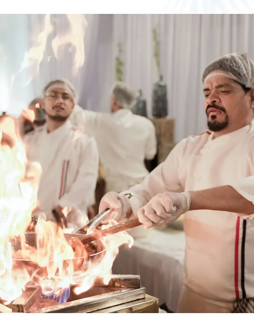 We transform catering into an interactive experience with our live cooking stations. Your guests can watch our expert chefs prepare dishes right before their eyes, from dramatic flambé presentations to sizzling tawa preparations, adding an element of entertainment and ensuring ultimate freshness.