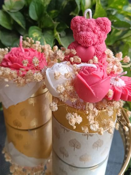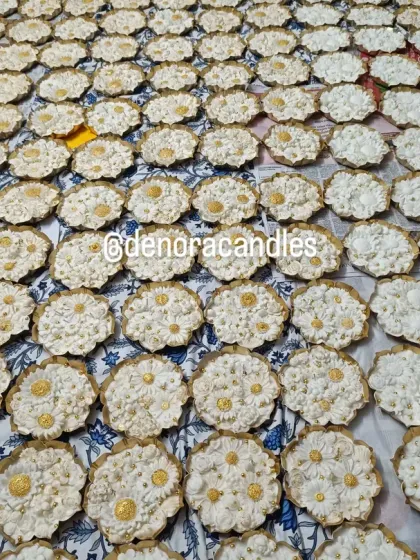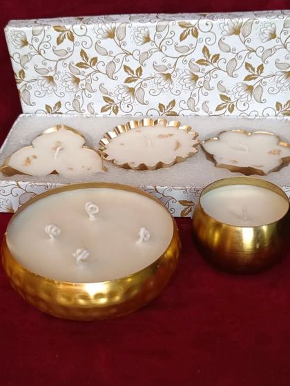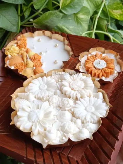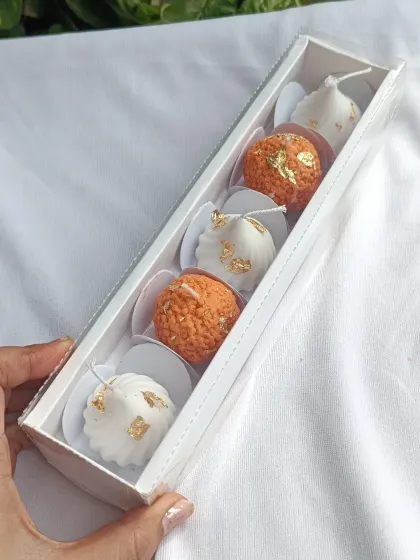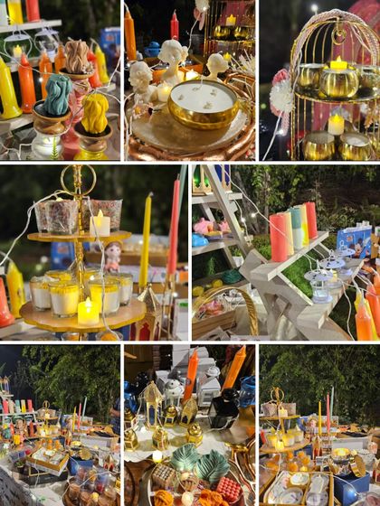 If you’re planning a wedding, I can design return gifts or even set up a live candle-making station where guests make their own custom event favors. For festivals, my methai candles (look like actual laddoos and modaks!) and urli candles are pretty popular, plus I do handcrafted festive hampers for Christmas parties.