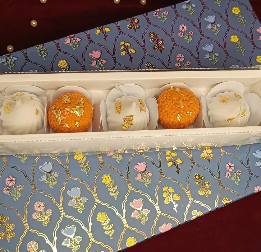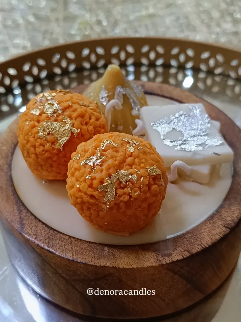 Celebrate the festival of lights and other special occasions with my exclusive collection of handcrafted candles. Discover unique designs like my popular methai candles that look like real sweets, and intricately detailed urli candles that add a traditional yet modern touch to any decor.