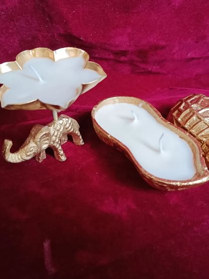 Delhi ki mithai (sweets) inspired candles - think laddoo and modak shaped candles. These are super popular around Diwali, and definitely look tempting! I also make big urli candles with floating flowers for a festive vibe.