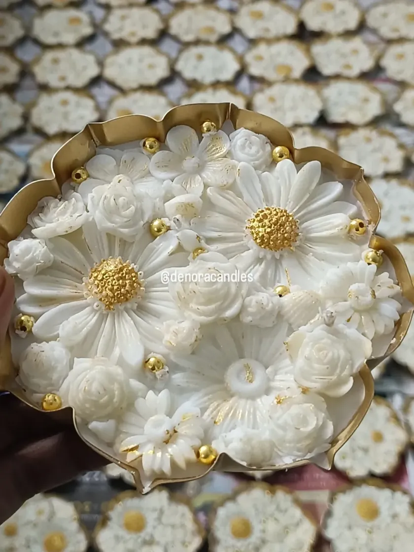Perfect for celebrations like Diwali or for adding a traditional touch to your home. I handcraft each Urli with 100% soy wax, featuring intricate floral designs, some with floating flowers and others with elegant gold-painted details. These are available in various sizes and are my most popular items for festive gifting.