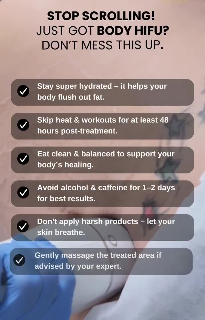 Target stubborn fat, cellulite, and skin laxity with our advanced body contouring treatments. We use technologies like Body HIFU for fat reduction and skin tightening on areas like the abdomen, arms, and thighs, helping you achieve a toned, sculpted appearance without surgery.