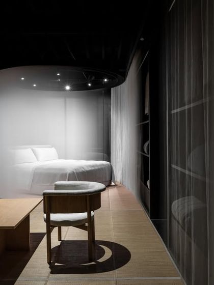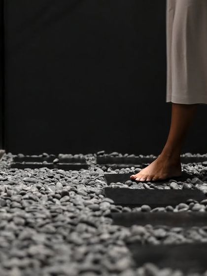 For this retail space in a heritage building, we focused on creating a contemplative journey for the customer. The design uses motorized curtains for a dramatic reveal and contrasting floor textures like rough pebble stone and tatami mats to slow the pace and engage the senses.