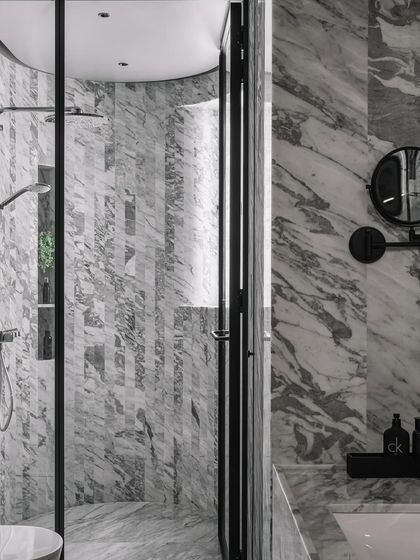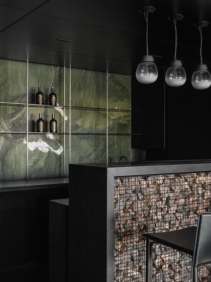 Materials matter. I obsess over how stone, wood, and light come together. Ceppo De Gre, Statuario marble, lime plaster - each one adds its own feel. Oak flooring, ribbed wooden slats, custom grey veneer strips, and Gabion walls aren’t just details; they’re the soul of the place. Lighting? Always a statement, always considered.