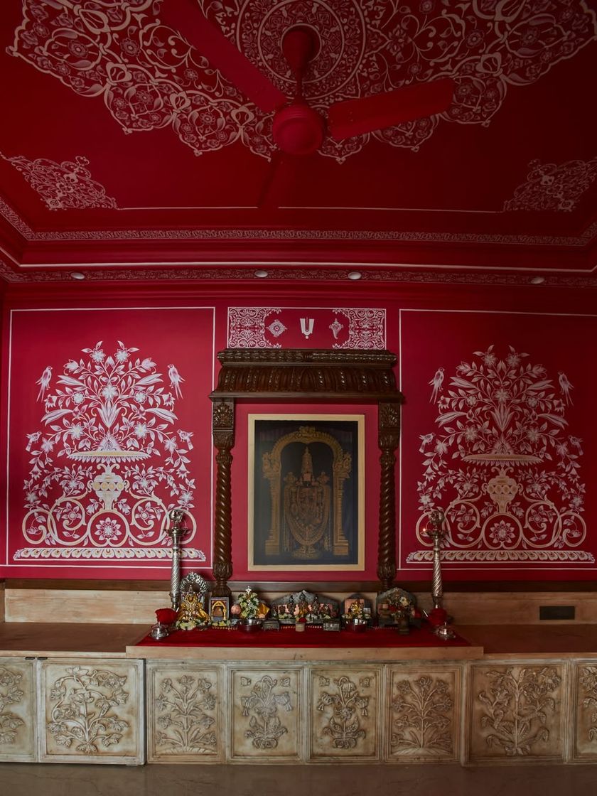 I believe in the soul of handwork. This is a showcase of spaces transformed by the patient, intricate art of hand-painting, a signature of my practice where I collaborate with master *karigars* to create walls, ceilings, and doors that tell a story, stroke by stroke.