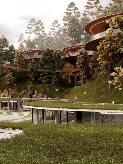- “Hillucinations” Resort, Himachal: Floating stone villas among pine trees.