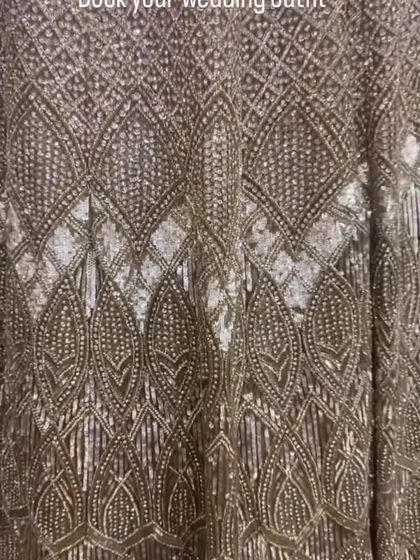 - Hand-embroidered bridal dress with zari, dori, sequin, crystal, bead, and mirror work. I do all the handwork myself, so every piece is personal.