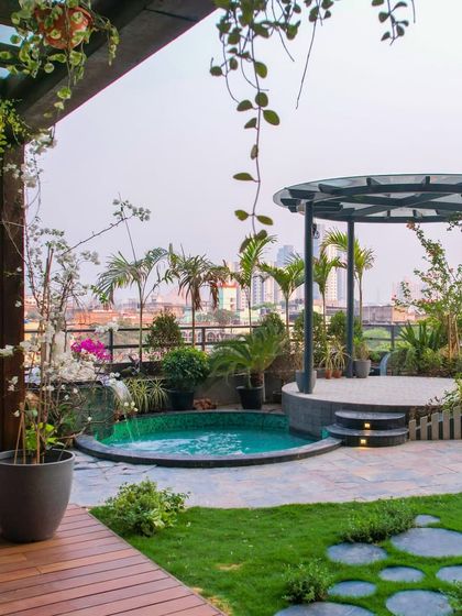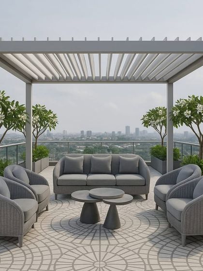 All-in-one landscaping & home improvement - We do terrace garden design, custom outdoor furniture Kolkata, facade solutions, textured outdoor tiles, pergolas, gates.