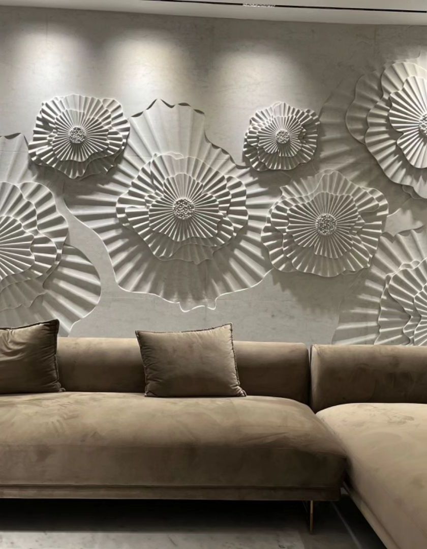 We create walls that tell a story. This collection showcases our expertise in handcrafted murals and sculptural panels using materials like natural stone, mosaic, and metal with gold leaf accents. These are not just wall coverings; they are bespoke art installations for entrances, living rooms, or mandir spaces.
