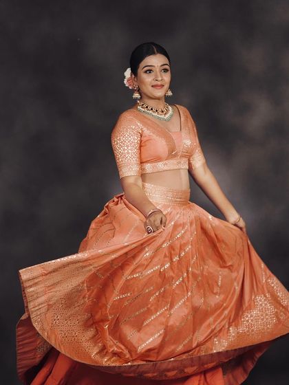 The half saree, or langa voni, is a timeless South Indian tradition. My collection includes everything from classic Kanchi silk sets to contemporary floral organza designs, all available for rent. I love helping clients mix and match skirts, blouses, and dupattas to create their perfect half saree look.