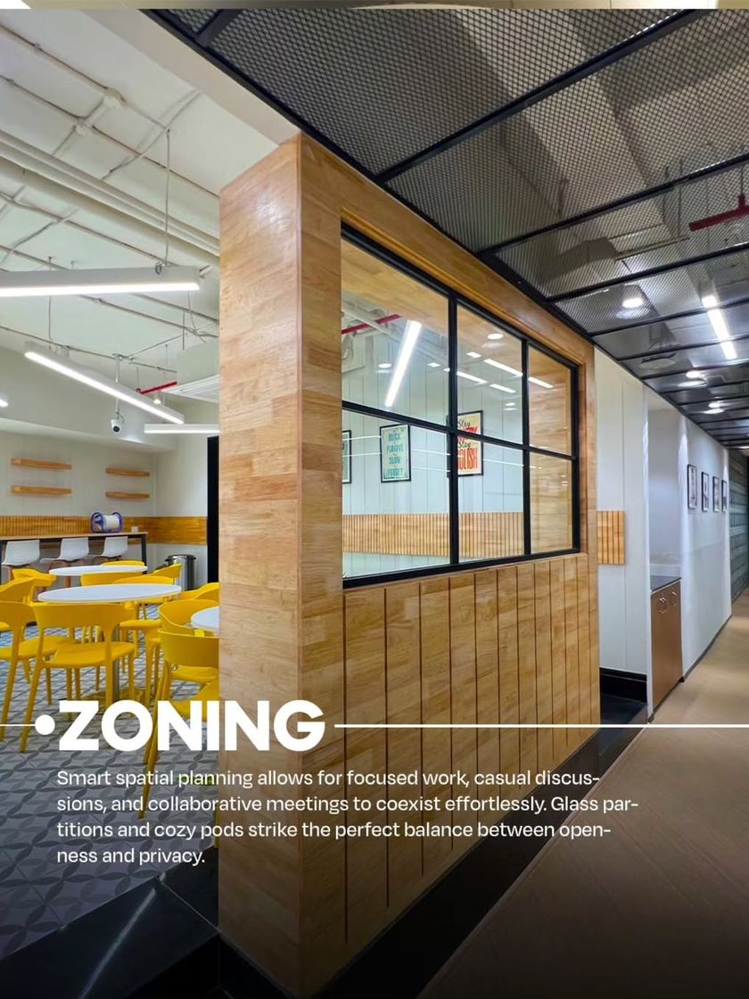 We specialize in creating flexible and vibrant coworking environments that foster community and productivity. Our designs incorporate smart zoning for different work styles, from collaborative lounges and breakout zones to private pods and focus areas, all infused with brand personality and biophilic elements.