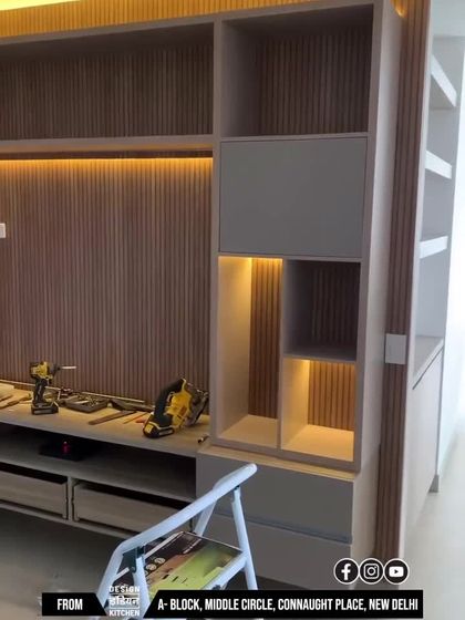- Bespoke entertainment unit that’s more than just a box for your TV. I love adding ambient LED lighting and mixing open shelves with handle-less drawers.