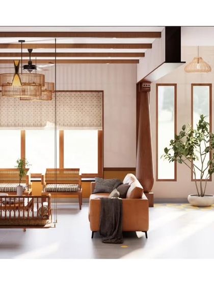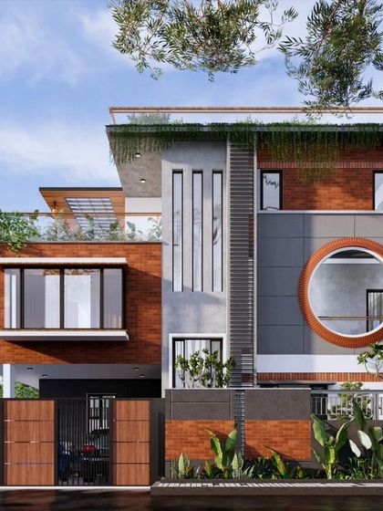 Indian Modern Style - We blend contemporary lines with earthy Indian touches, like Athangudi tile architecture and exposed brick interiors.
