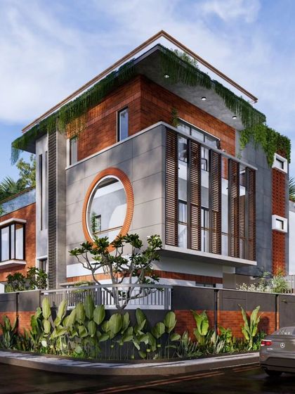 Indian Modern Style - We blend contemporary lines with earthy Indian touches, like Athangudi tile architecture and exposed brick interiors.